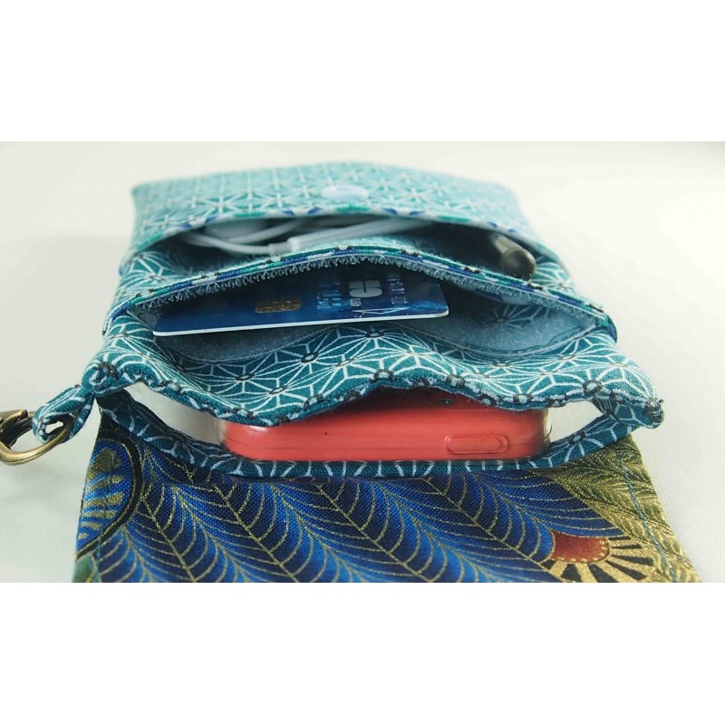 Cet étui est doublé de tissu thermocollant épais ce qui permet d’assurer une bonne protection au téléphone. Le film plastique transparent permet d'utiliser un smartphone sans même le sortir de l'étui. Et en plus au verso, il y a deux poches pour mettre des écouteurs, un stylet ou une batterie externe !