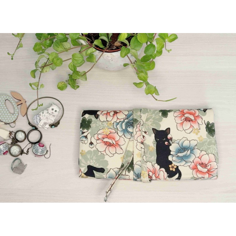 A part la première photo, les photos suivantes correspondent à une autre trousse à bijoux (même modèle mais tissu différent) et sont données à titre indicatif.